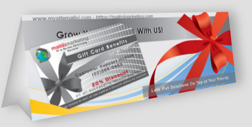 Who doesn’t love a gift certificate?! And a gift card?! Here at Malixi Marketing, we do not only offer you an effective marketing service, we also offer great discounts and great possibilities. What now? We have these very low-priced quality services plus a lot of give-away such as these, what else could you ask for?!