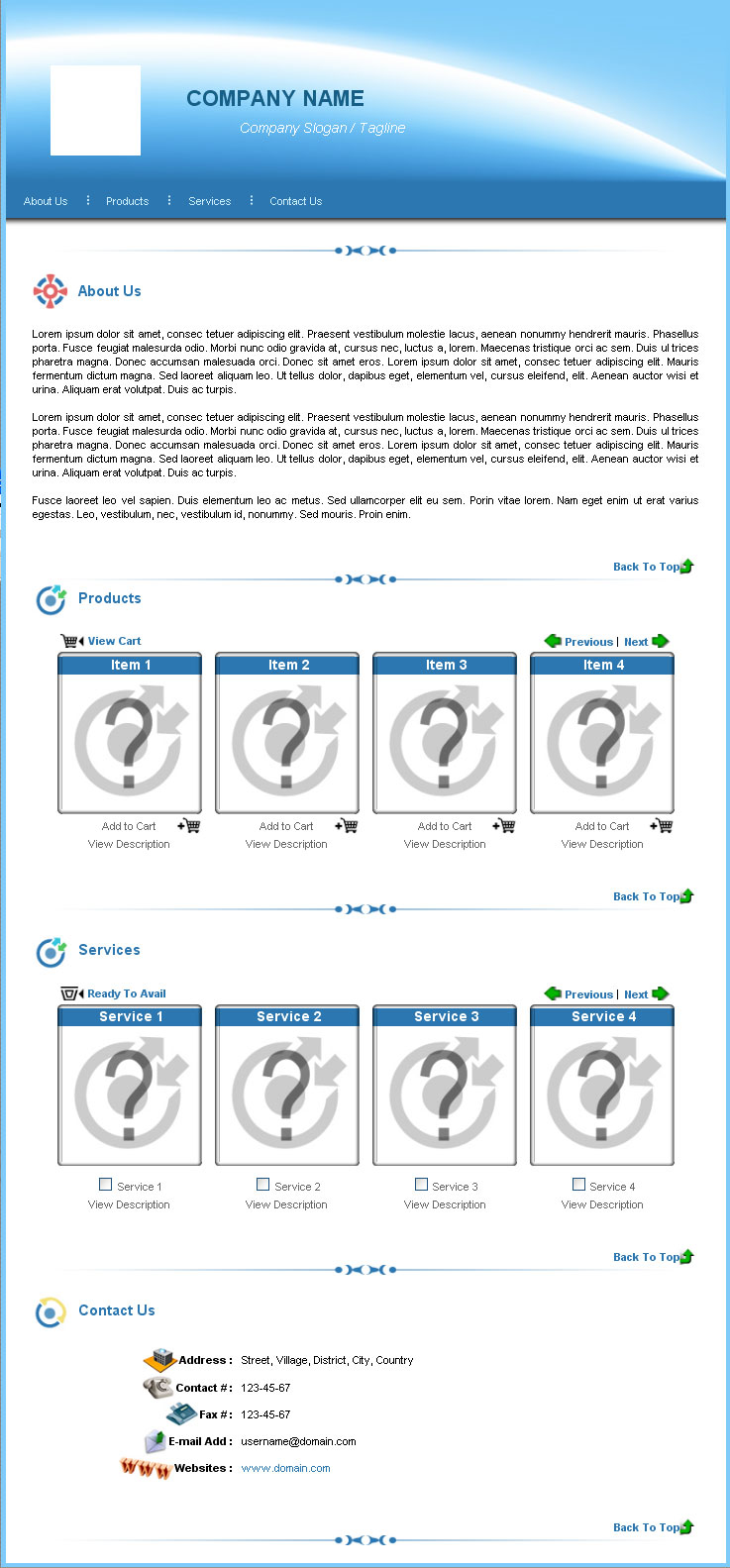 Now that you know what our Marketing Webpage looks like; it is now high time to tell you what it does. From your company Logo on the top to your contact details down below, your costumers will find it easy to understand who you are and what you are offering. Plus, the integrated Paypal service on our Product Templates makes online shopping a lot more comfortable. In short, our Marketing Webpage Templates are designed to make buyers see the products you offer as well as buying at the same page at the same time. |
